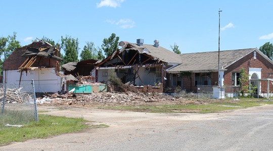 During the EF-3 tornado that struck Century on February 15, the main potion of the old high school was heavily damaged, with windows broken and window frames pushed inward. The football stadium, including the press box, was also structurally damaged.