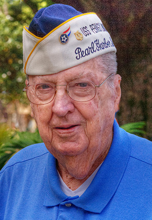 Frank Emond, CWO4 USN (RET.), spent his naval career as a musician and band director. He was on the stern of the USS Pensylvania (BB-38) getting ready to play morning “Colors” when the Japanese attacked Pearl Harbor on Dec 7, 1941. “At five minutes to eight, I looked up and saw a line of planes coming in. The first one peeled off and dropped something. I thought the plane was coming apart. I watched it until the something hit the ground and exploded. We knew we were in trouble then …”