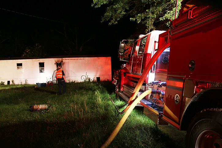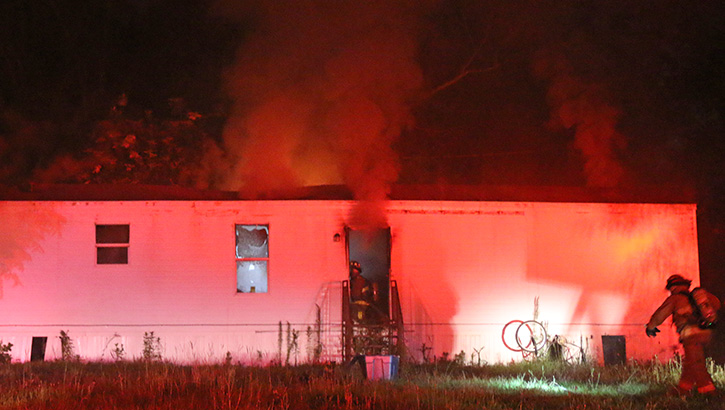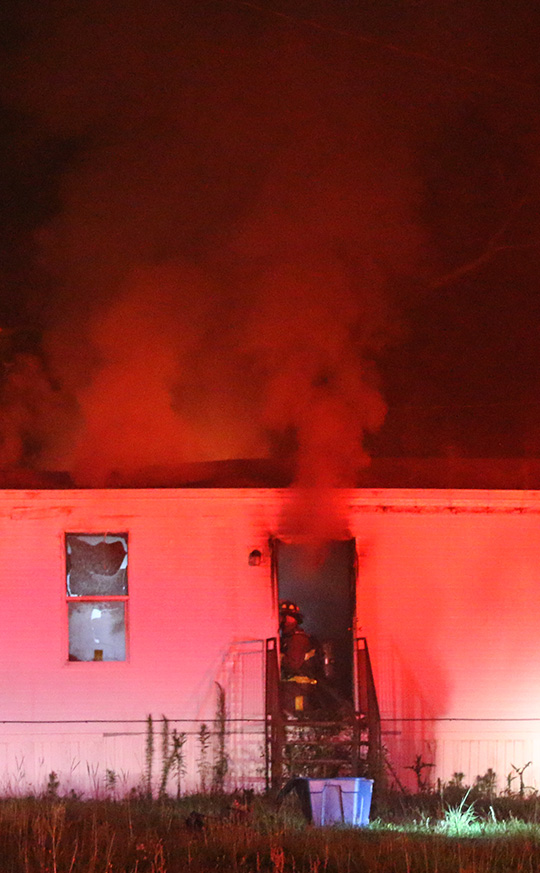Smoke was pouring from the single wide mobile home in the 100 block of Juniper Street as the first firefighters arrived on scene about 11 p.m. They were able to quickly knock down the fire, which cause heavy damage.