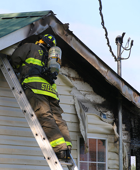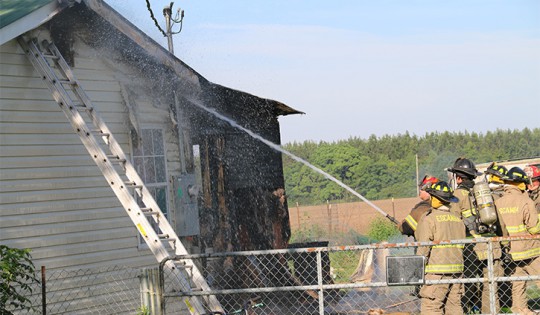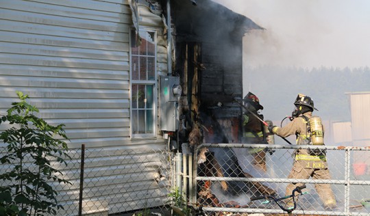 The back corner of the small wood frame house in the 2500 block of Green Village Road, just north of Highway 164, was reported to be fully involved just before 8 a.m. The fire extended into the attic of the home.