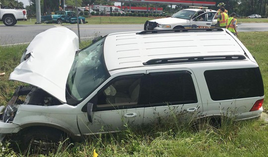 There were no injuries in a two-vehicle accident Sunday at the intersection of Nine Mile and Beulah Roads. Everyone involved in the crash refused medical treatment at the scene. Further details have not been released by the Florida Highway Patrol. Photos for NorthEscambia.com, click to enlarge.