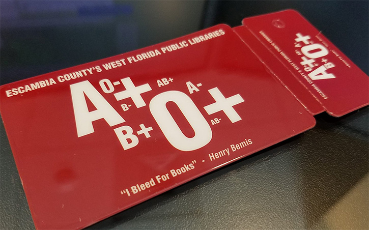 The first blood drive will be held Tuesday, June 28 at the main library to be followed by blood drive at a different library location every two months, rotating to each of the library branches in Escambia County. Donors will also receive a free t-shirt and a special edit “I Blood for Books” library card.