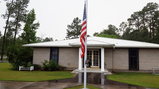 Flags remain at half staff today honoring the victims of the weekend attack in Orlando. Flags are set to be returned to full mast at sunset today, by order of President Barack Obama. Pictured: A flag at half staff in front of the Century Branch Library and the Century Town Hall. NorthEscambia.com photo, click to enlarge.