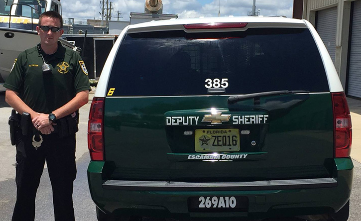 The Flomaton Police Department said Officer Kelley was working on the Click It or Ticket campaign when he stopped a 2012 BMW SUV that was traveling 73 mph in a 45 mph zone.