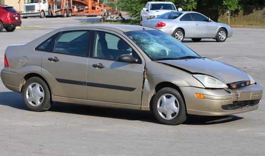 Pictured: One of the two vehicles involved in a crash that injured three juveniles Tuesday afternoon in Centuy. The vehicles were moved to the Food Giant parking lot following the crash. NorthEscambia.com photo, click to enlarge.