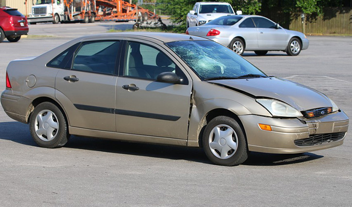 Appears someone broke the windshield with their head. Adult should be charged on the seatbelt law if not in use.