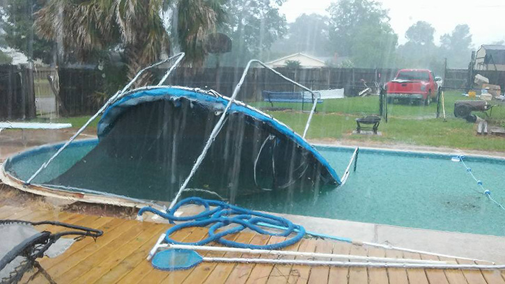 Reader submitted photos also showed a trampoline tossed into a pole. There were scattered reports of power lines down, and yard furniture blown about.