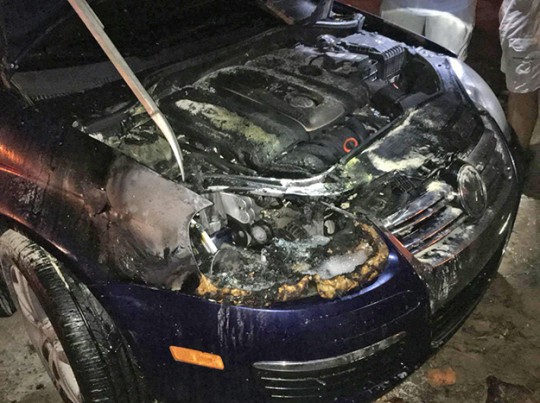 Firefighters were able to extinguish a vehicle fire early this morning before it spread to a nearby home. The Beulah Station of Escambia Fire Rescue responded to the blaze in the 5900 block of West Nine Mile Road in the the Crystal Lake Mobile Home Park. Photos for NorthEscambia.com, click to enlarge.