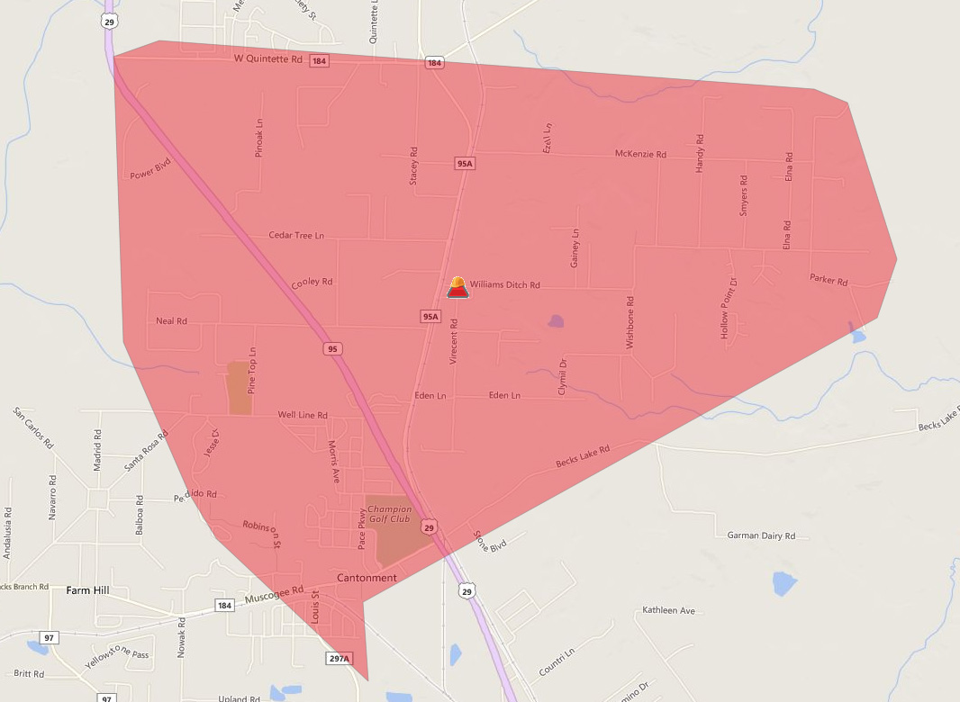 During the outage, the Cantonment Station of Escambia Fire Rescue responded to Jim Allen Elementary School for a sprinkler system waterflow alarm. The cause of the alarm was attributed to the power failure.