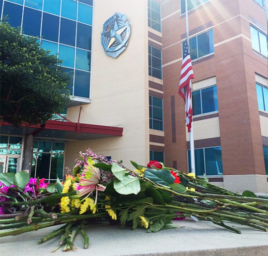 Pictured: Flowers outside Dallas Police Headquarters. Courtesy photo for NorthEscambia.com, click to enlarge.
