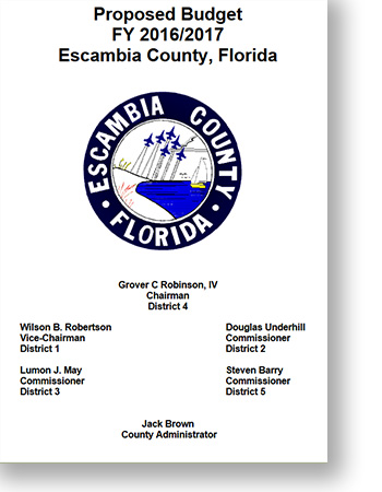The Escambia County Board of County Commissioners’ proposed budget for fiscal year 2016-2017 is now available online by clicking here (242 page pdf).