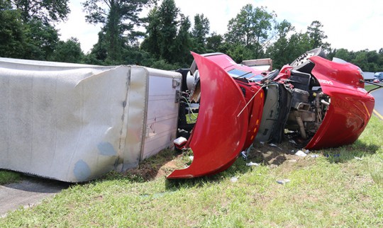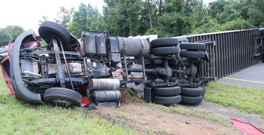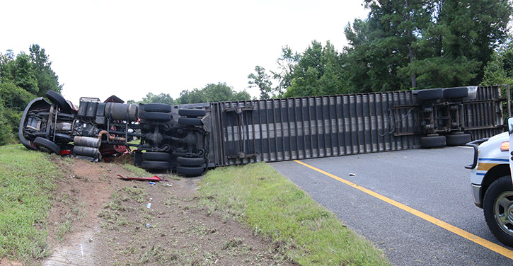 Overturned 18 Wheeler Injures One; Shuts Down Highway 29 For Seven Hours