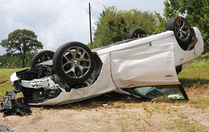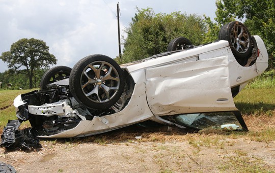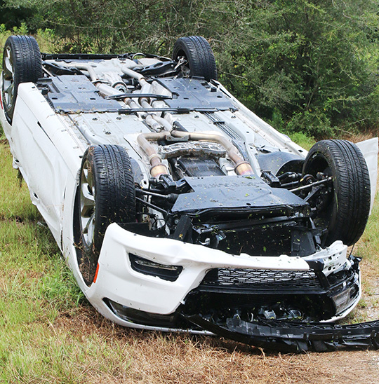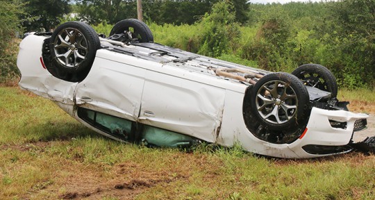 The driver of a Dodge Charger lost control while northbound on Highway 97 near Hendricks Lane and left the roadway. The vehicle came to rest upside down in a driveway.