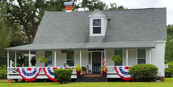 Motorists on Highway 29 at Hecker Road in Century are greeted by this historic home’s patriotic display for the Fourth of July weekend. The home, belonging to the Boutwell family, was constructed in 1907 and was recently restored. NorthEscambia.com photo, click to enlarge.