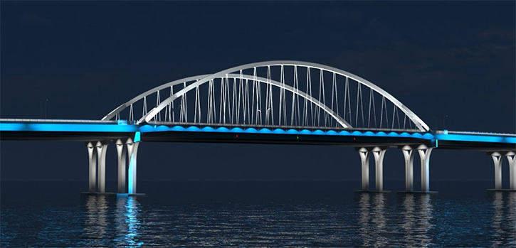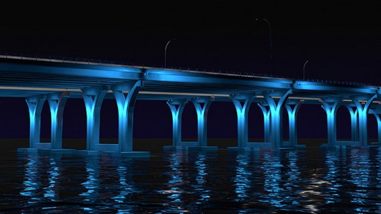 So new bridge will be about 135 feet wide and if the blue lights are for