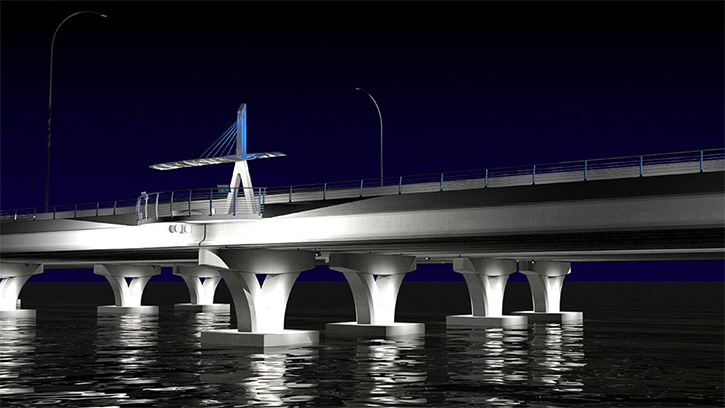 As part of the $398.5 million project, Skanska will be required to design and construct a new bridge crossing of U.S. 98 (State Road 30) over Pensacola Bay in Escambia and Santa Rosa counties. The typical section of each new bridge will consist of three 12-foot lanes in one direction with 10-foot inside and outside shoulders. The bridges will include 10-foot wide shared use paths on the outside of each bridge with a concrete barrier separation between the outside roadway shoulder and the path. A 150-foot wide horizontal and 65-foot vertical clearance envelope will be provided for the main channel through the new bridges. The project length is approximately 3.7 miles.