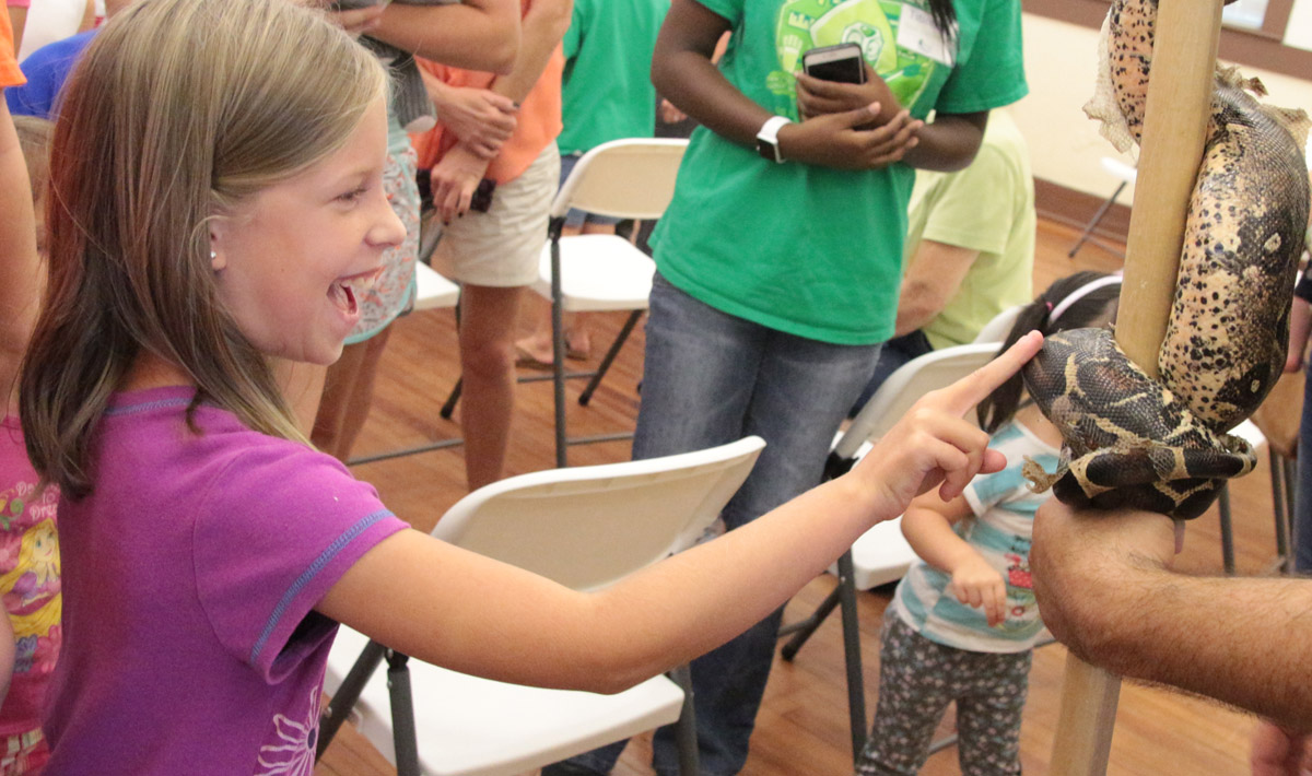 Dozens of children learned about reptiles and amphibians Thursday during the Summer Reading Club at the Molino Branch Library. They learned the difference between snakes and lizards, met a large African frog that really does not like to jump, learned about the difference between a turtle and tortoise and got hands-on with a boa constrictor.
