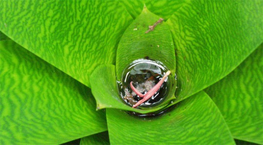 Pictured below: Plants such as bromeliads can catch water in their leaves and become breeding areas for mosquitoes. DeValerio recommends flushing these plants out every two to three days. Photo by Phil Lounibos UF/IFAS for NorthEscambia.com, click to enlarge.