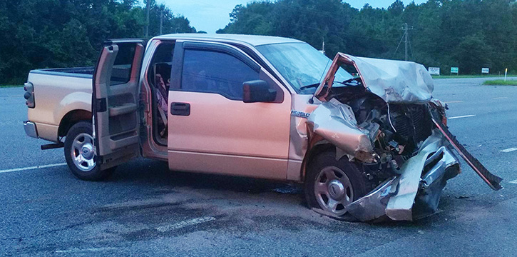 According to the Florida Highway Patrol, 21-year old Troy Jackson of Cantonment was stopped in his 1995 Chevrolet Silverado facing east on Neal Road when he pulled into the direct path of a 2007 Ford F150 driven by 26-year old Raven Kendrick of Molino. The force of the collision cause the Silverado to overturn.
