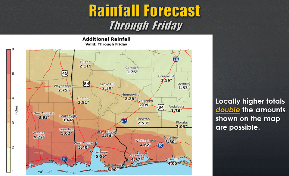 A flash flood watch continues through Friday. Here is your official North Escambia area forecast: