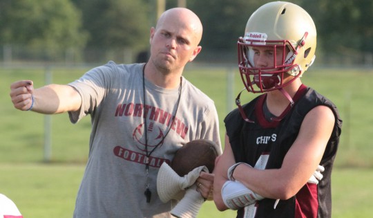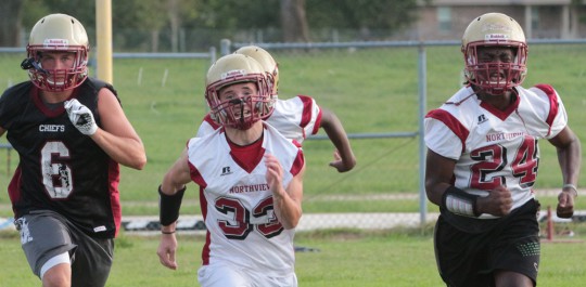 Pictured top: New Northview Coach Derek Marshman held practice Monday, just day after being named head coach. Pictured inset and below: The Chiefs open practice Monday. NorthEscambia.com photos, click to enlarge.