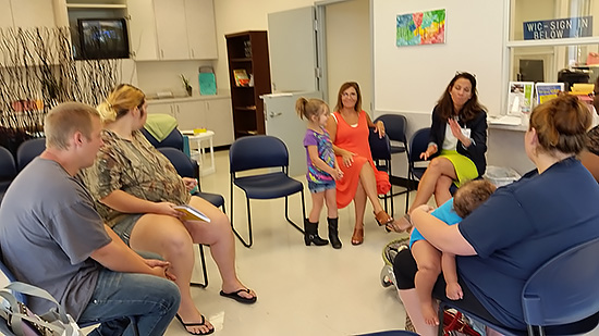 The centering program follows the recommended 10 prenatal visits, but each visit is 90 minutes long with the doctor. Moms engage in their own care by taking their own weight and blood pressure, and recording their own health data. They also receive private time with Dr. DeCesare, who brings a handheld ultrasound device to check the baby in the womb.