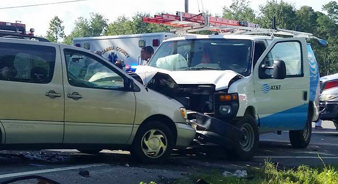 According to the Florida Highway Patrol, 35-year old Dwane Hendley of Montgomery was southbound in an AT&T cargo vanĀ on Highway 297A when he ran a stop sign at Kingsfield Road and hit a 2007 Kia Sportage driven by 54-year old Angela Miller of Pensacola and a 2000 Toyota Sienna driven by 60-year oldĀ Thomas Starks of Cantonment. Starks’ Sienna was forced back into a Toyota Camry driven by 33-year old Aprill Christopher of Cantonment.