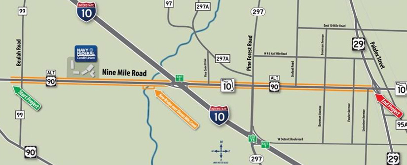 The $46 million project includes widening Nine Mile Road between Beulah Road and U.S. 29 from two to four travel lanes. Additional improvements include constructing a new bridge over Eleven Mile Creek, new sidewalks and stormwater retention ponds, signalization improvements and drainage enhancements. FDOT representatives will be available to provide information about planned construction work and potential impacts.