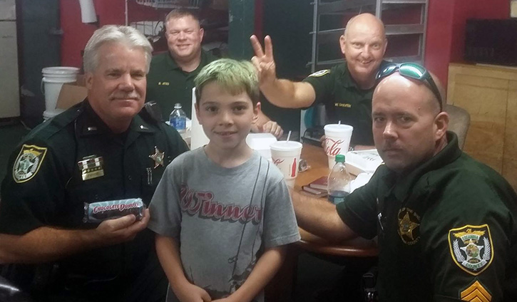 Tyler and his mother Sheena, who is a former police officer, created the “I DONUT need a reason to THANK a cop” program after an encounter with Escambia County Sheriff’s deputies at Gilley’s Store in Bratt during the summer. He asked if he could use some of his own money to buy doughnuts for the officers. He purchased four packs of chocolate doughnuts to share with the deputies.