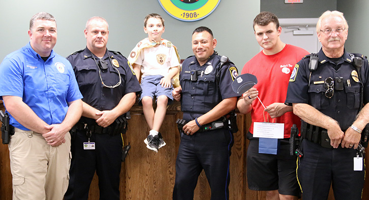 Thursday, Tyler continued on his mission to thank every cop in America with a visit to the Flomaton Police Department. He provided each officer with doughnuts and a goodie bag. He was able to test out the siren, public address system and computer in a brand new Dodge Charger patrol car, and he even raced a couple of officers on foot. His request to play with an officer’s pepper spray and Taser was cheerfully denied for safety reasons.