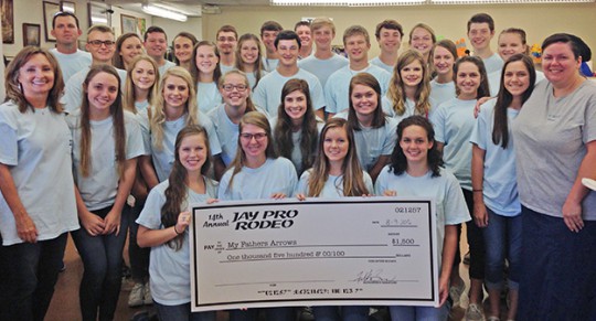 Jay Pro Rodeo was represented by JHS SGA members, advisors and Frederick Barrow in presenting My Father’s Arrows with a donation of $1,500. SGA members also volunteered at the thrift store and helped to sort and store clothing.