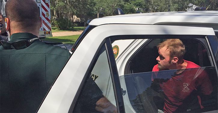 Pictured: Stabbing suspect Jefferson Charles Michael Helton of Cantonment is taken into custody. Pictured below: The scene of the stabbing in Freeport. Photos for NorthEscambia.com, click to enlarge.