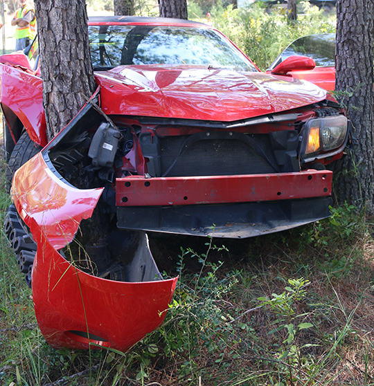 The driver lost control of his Chevrolet Camaro on Highway 97 at Howell Road. The vehicle came to rest against several trees on Howell Road. The driver refused medical treatment. The accident is under investigation by the Florida Highway Patrol. Atmore Ambulance and the Walnut Hill Station of Escambia Fire Rescue also responded to the crash.