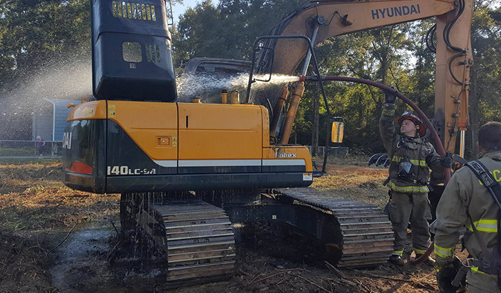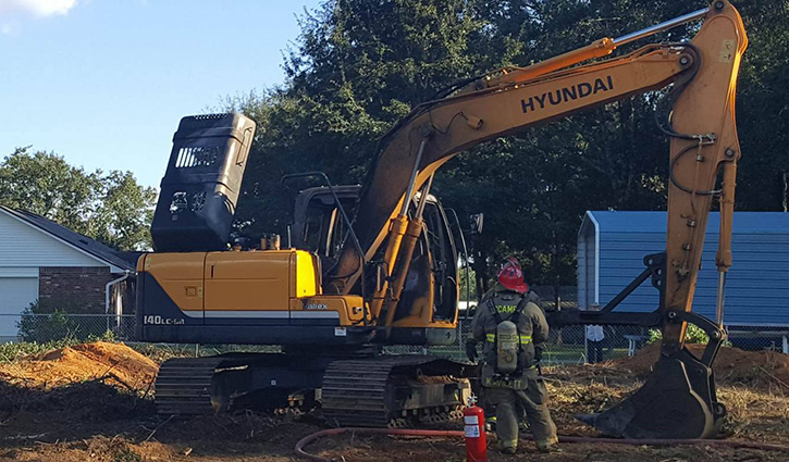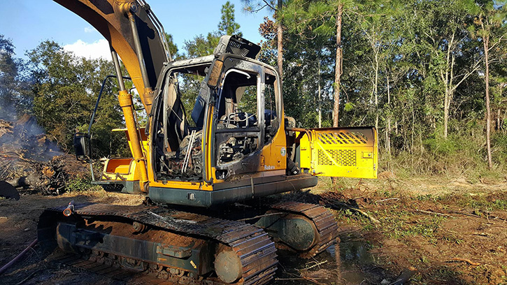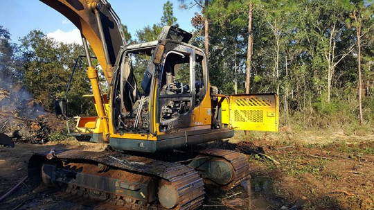 Fire heavily damaged an excavator Tuesday afternoon. The fire was reported about 4:20 pm. in the 7300 block of Highway 95A near Highway 97 in Molino. The Molino Station of Escambia Fire Rescue was able to quickly extinguish the fire. There were no injuries reported. NorthEscambia.com photos by Kristi Barbour and others, click to enlarge.