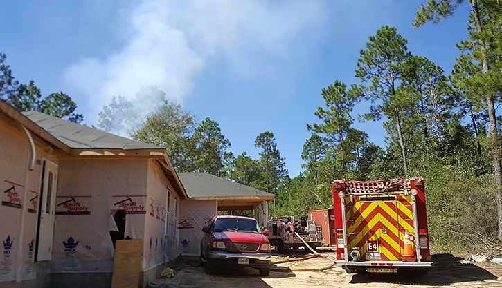 Firefighters responded to a brush fire Tuesday morning off Schaag Road in Molino. The fire near a home on construction on Evers Haven was quickly contained by Escambia Fire Rescue. The Florida Division of Forestry also responded. NorthEscambia.com photos by Kristi Barbour, click to enlarge.