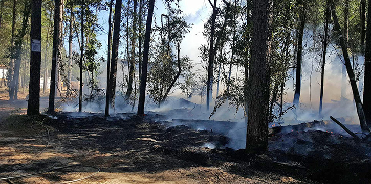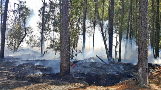 Pictured: A brush fire burned about an acre on Handy Road in Cantonment Saturday afternoon. NorthEscambia.com photos by Kristi Barbour, click to enlarge.