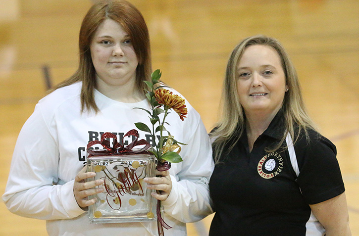Pictured top: Chiefs JV volleyball action from Thursday night. Pictured below: Northview senior volleyball players are honored. NorthEcambia.com and Kayleen Amerson photos for NorthEscambia.com, click to enlarge.