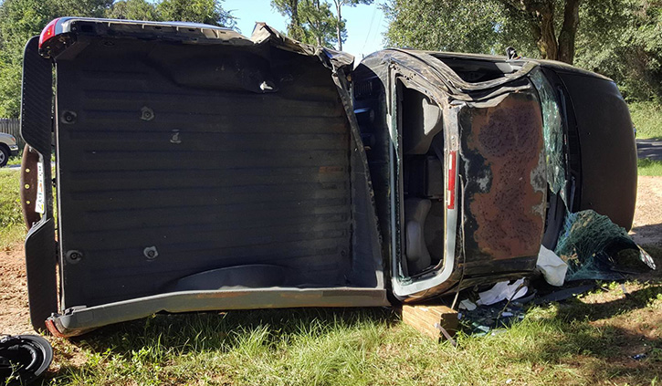 One person was injured in a single vehicle rollover accident Friday at 90 & Ranch Road and Old Chemstrand Road. The driver was transported to an area hospital with injuries that were no considered life threatening. Further information has not been released by the Florida Highway Patrol. NorthEscambia.com photos by Kristi Barbour, click to enlarge.