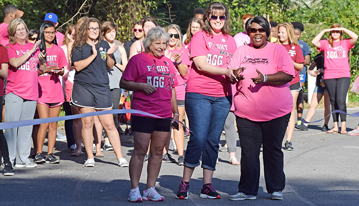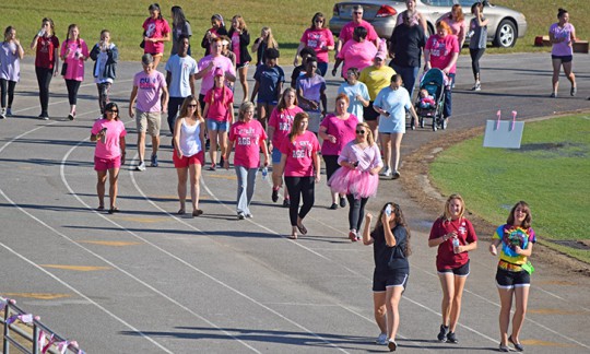 Organizers had hopes of 300 laps walked, representing 300,000 women who will be diagnosed with breast cancer in 2016, but participants walked just over 400 laps. The proceeds were combined with the Lady Aggies volleyball team’s Dig Pink proceeds and the Student Council’s “Fight Like an Aggie” shirt proceeds for a combined donation of just over $2,100 to the Pensacola Breast Cancer Association.