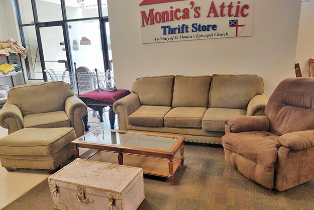 Patrons of Monica’s Attic Thrift Store can shop knowing their purchases will positively impact the community, and donors can recycle items they no longer use or need, with the benefit of a tax deduction. Carrying a variety of gently used home décor, furniture, housewares, and books, as well as clothing and accessories for men, women and children, store sales will fund the community food pantry and the beans and rice programs of Saint Monica’s Episcopal Church.