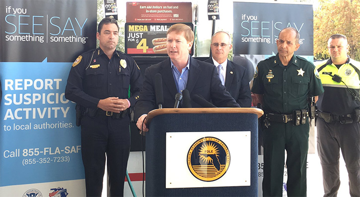 Pictured: State officials unveiled Florida’s online “If You See Something, Say Somethin” tool kit on Monday. Photo for NorthEscambia.com, click to enlarge.