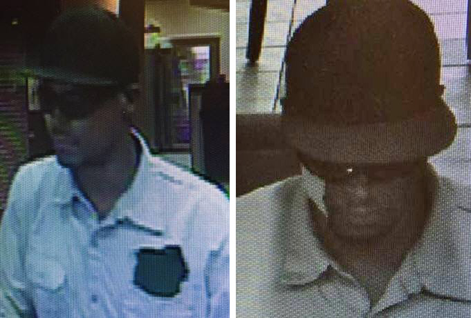 The suspect was a black male, possibly in his early 30s and about six feet tall. He had a mustache, and was wearing a long-sleeved yellow shirt with a patch on the left shoulder sleeve, rolled up dark jeans, dark hat, and sunglasses.