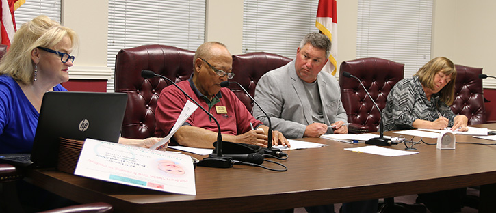 Only three of five council members — Ben Boutwell, Ann Brooks and Gary Riley — were present for the meeting. Sandra McMurray Jackson and Annie Savage were absent. Mayor Freddie McCall was also not present; he is attending a Gulf Power Annual Economic Symposium at the Sheraton Bay Point Resort in Panama City.