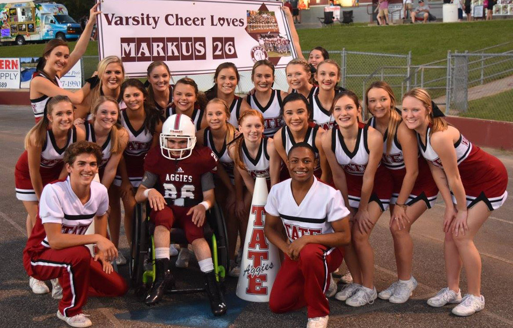 Markus has cerebral palsy and has spent his high school career as an honorary member of the Aggies team. He’s never scored a touchdown, made a tackle or even played a single down. But he embodies that Aggie spirit, and has always provided the support his team needs. Now his team has stepped up to make his dream of playing a reality.