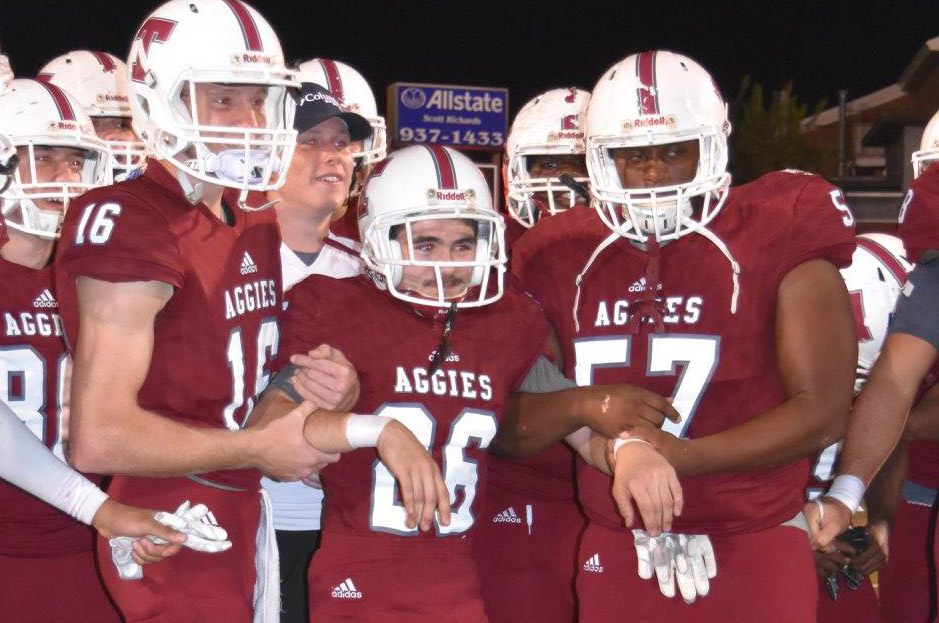Friday night, he was out of his wheelchair leading his team onto the field as he’s done before. But it was a night like never before at Pete Gindl Stadium. Markus played a special pre-game down, running with help from his team for a 10-yard touchdown. That sent his Aggie teammates rushing onto the field to celebrate the play, which will earn Markus his letter in football. (Video below.)