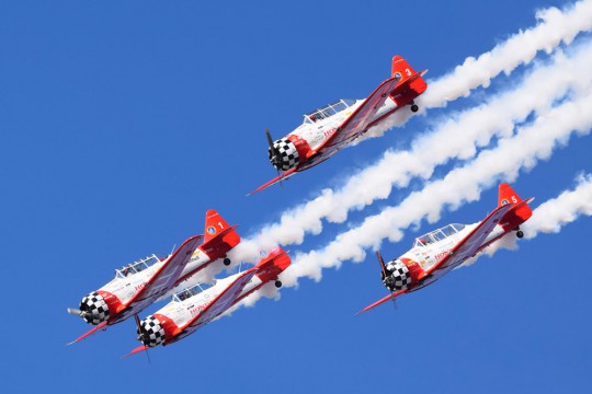 The four planes in the bottom picture are the Areoshell Team. The planes were models that were used in WWII. Great stunts by all the groups there, but I really enjoyed this one, and of course, the BLUES!