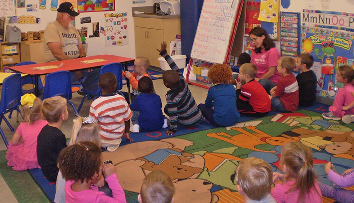 Local veterans visited with the Camp Fire children and spoke about what it means to be a veteran. The children said the Pledge of Allegiance, and sang “God Bless America” and “You’re a Grand Ole Flag”. They listened and thanked each veteran for their service.