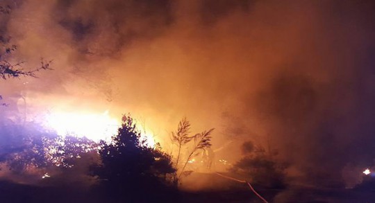 Fire destroyed an abandoned home off Greenwood Road in Berrydale in northern Santa Rosa County Tuesday night. The cause of the fire is under investigation by the Florida State Fire Marshal’s Office. There were no injuries reported. Courtesy photos for NorthEscambia.com, click to enlarge.