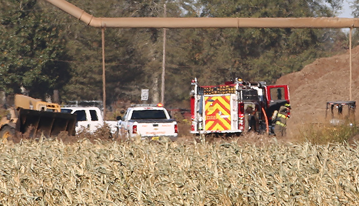 A small fire was smoldering in cotton “trash”, a by-product of the cleaning and ginning process. Such fires often happen a few times each year.