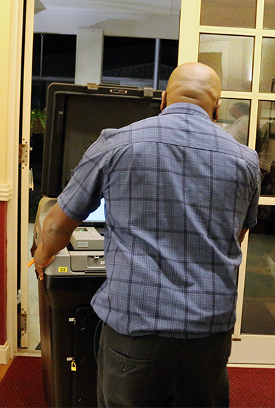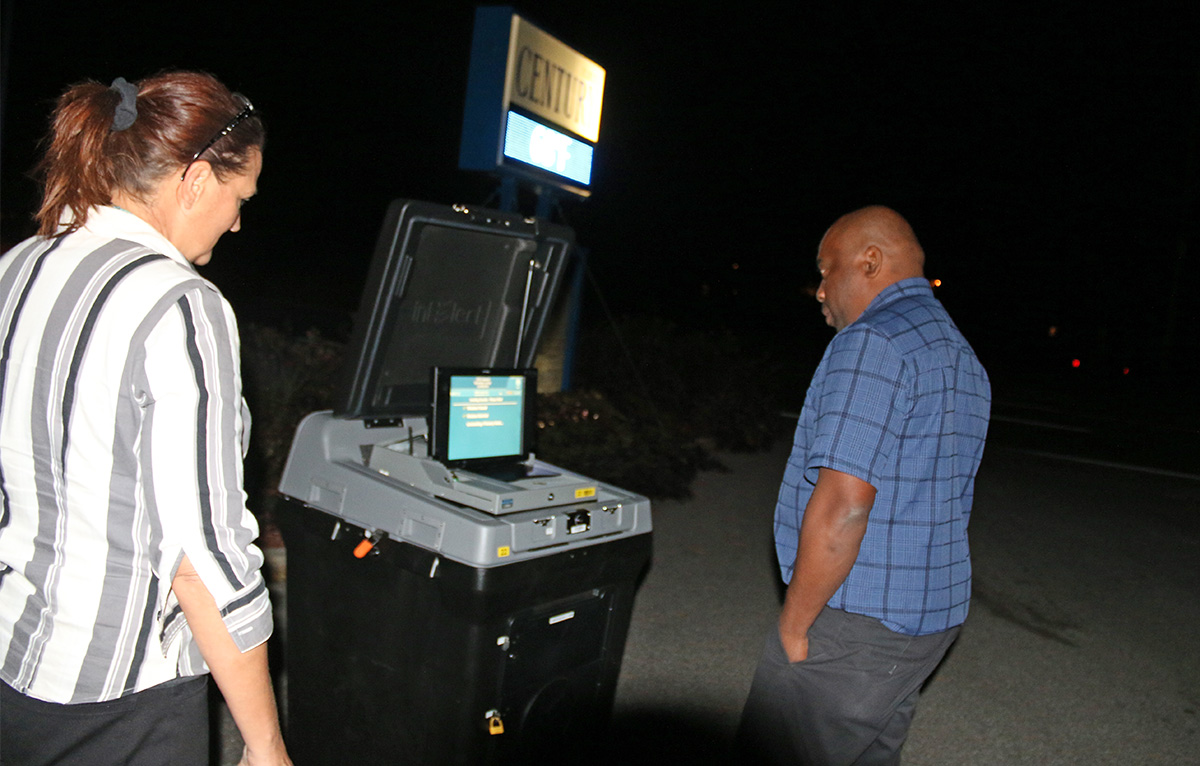 The voting machines use cellular modem to transmit encrypted information back to the Supervisor of Elections Office. But with poor cellular coverage at the Century, it was a no go getting a cellular connection inside the Century Town Hall. Elections officials even rolled the machine into the parking lot, trying different spots to get a quality cellular connection. But their efforts failed.